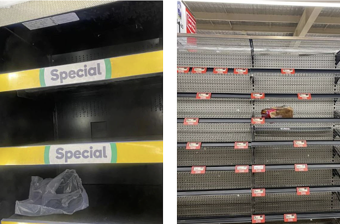 此次缺货的商品涉及软饮、大米、意面、肉类、面包和冷冻食品等。
