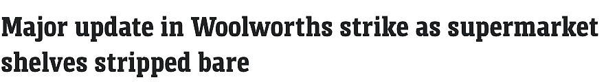 1500余名联合工人工会(UWU)的成员为了更好的薪资待遇而选择罢工,这使得Woolworths在新州、维州和首都领地门店的商品供应受到影响。