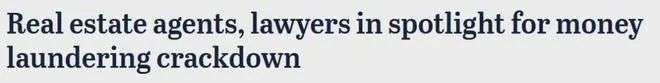 房地产经纪人、律师和会计师等将成为澳大利亚反洗钱新法的重点目标。