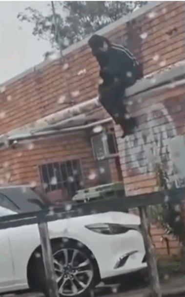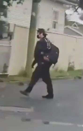 案发后不久,社交媒体上流传着一段视频,显示案发当天早上,一名身穿黑色衣服、背着黑色背包、戴着黑色帽子和口罩的男子从案发的汉堡店屋顶上跳下来,步行离开。