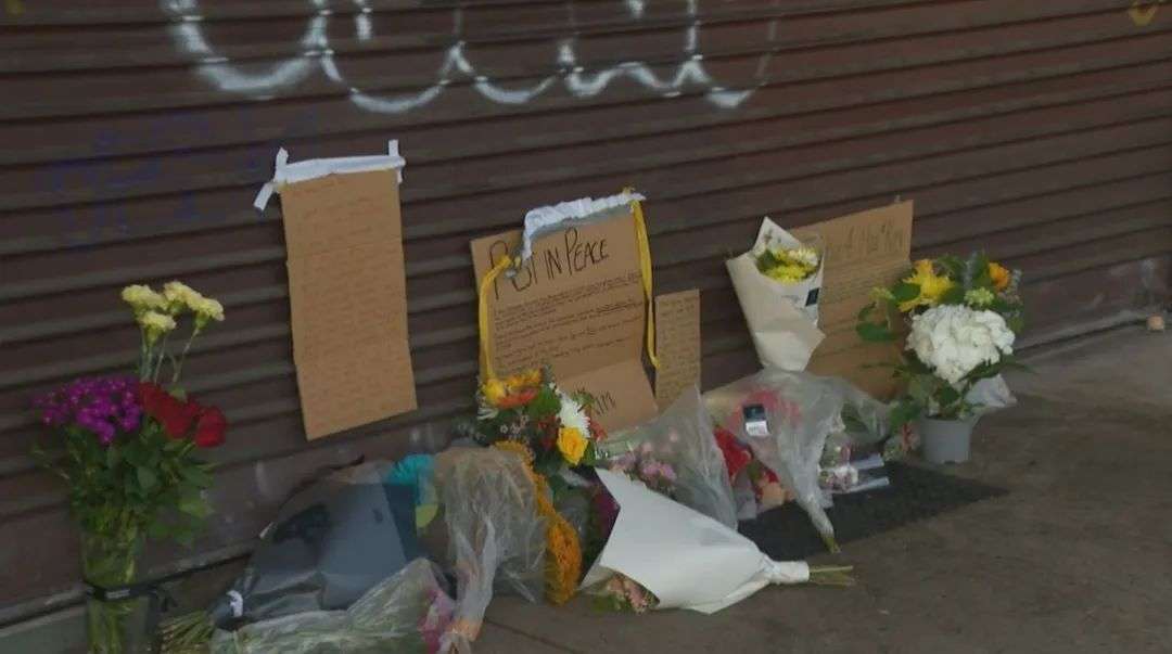 案发第二天,很多人来到汉堡店外,献上鲜花表示悼念。