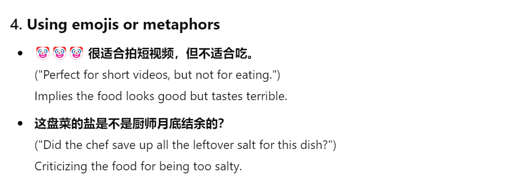 万能的AI,请告诉我怎么用中文暗语评价一家餐厅的食物难吃?