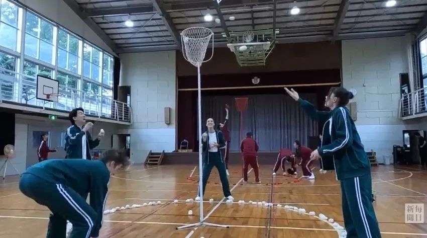 大家换上运动服要去体育馆的时候,会经过在走廊提水桶罚站的学生,细节还挺到位。