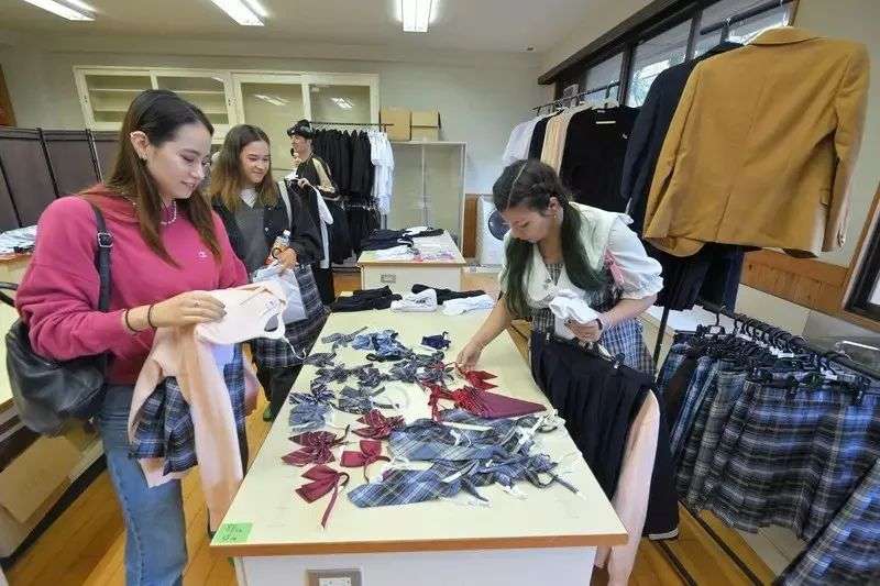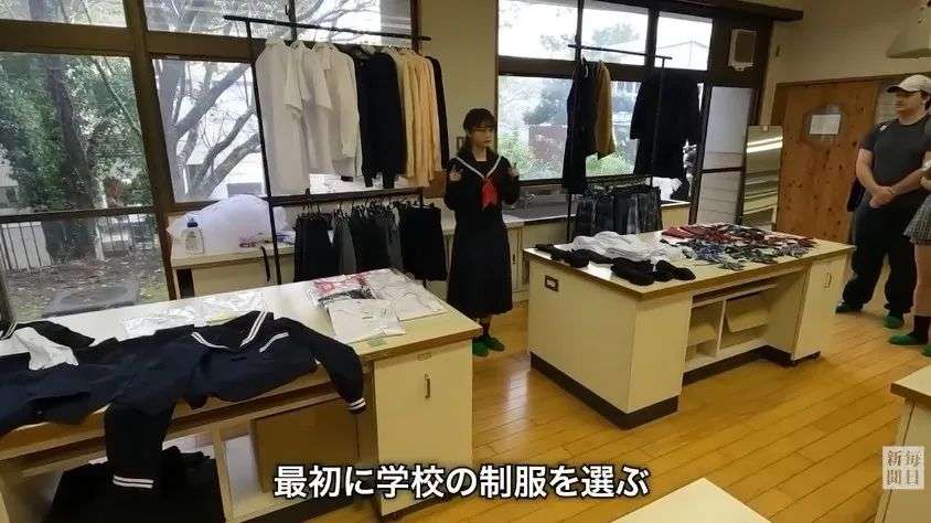 游客们到校后,首先来到更衣室,选择自己喜欢的学生制服。