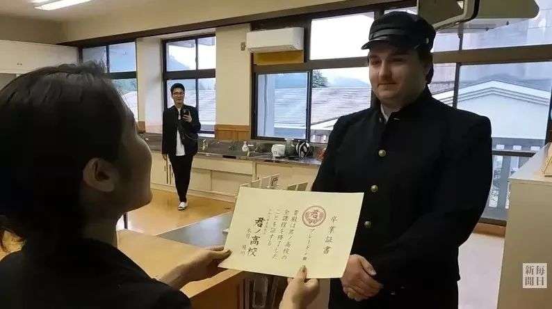 在一天的最后,外国同学们则会一一上台领取“你的高中”毕业证书。