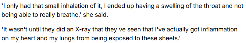 她将这套床品的气味描述为“有毒汽油”的味道,并讲述了自己经历: