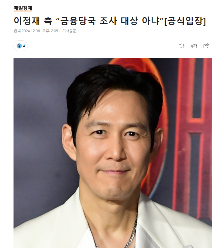 对于以上内容,李政宰方面回应表示:“Wider Planet确实正在接受金融当局的调查,但是Artist Company和李政宰不是调查对象”、“李政宰与Wider Planet的第三方分配有偿增资当时的信息泄露或先行买卖等非法行为完全没有关系”。