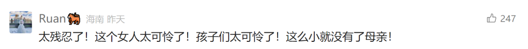 太残忍了!这个女人太可怜了!孩子们太可怜了!这么小就没有了母亲!
