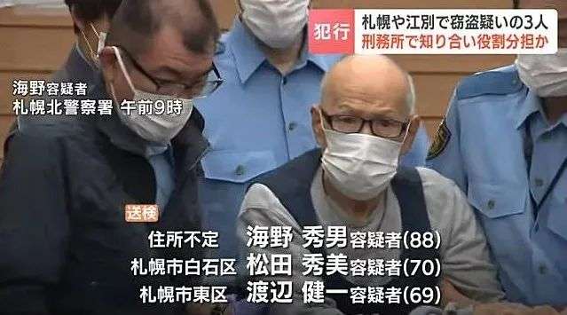 警方进行调查后,将3名高龄男子海野秀男(88岁)、松田秀美(70岁)和渡边健一(69岁)逮捕归案。