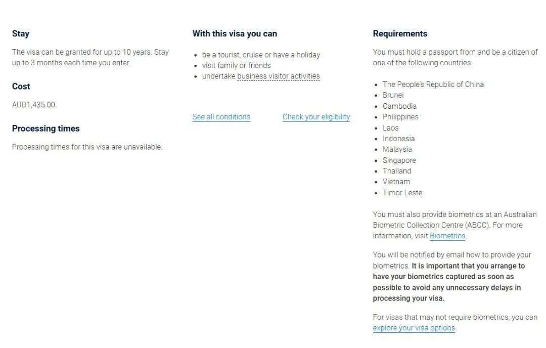 最长有效期可达10年:签证持有人可以在10年内多次往返澳大利亚;