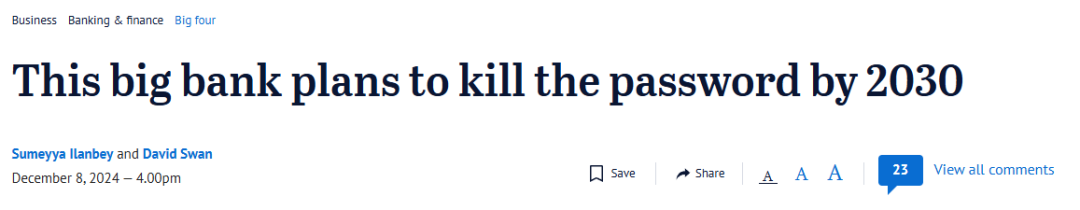 收藏重磅!澳洲四大行之一宣布:未来五年内彻底淘汰网银密码!