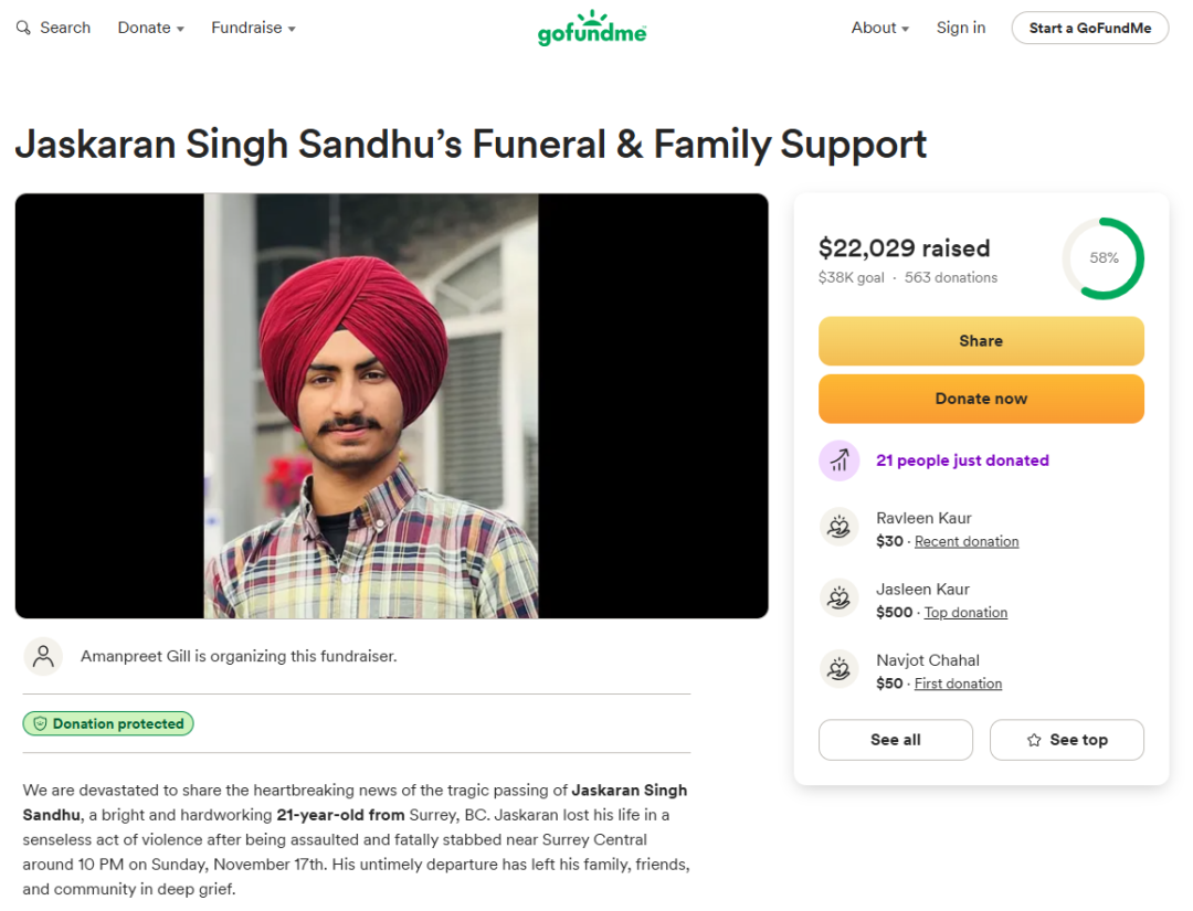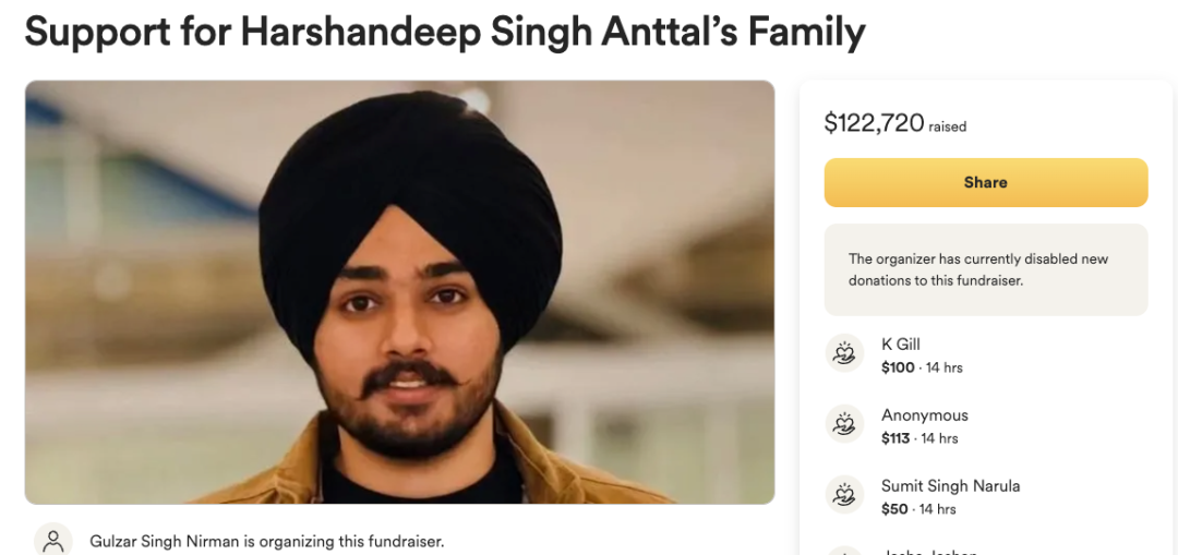 “这件事让人陷入极度的愤怒和悲伤中,难以用语言形容,”筹款组织者表示:“Harshandeep的故事提醒我们生命的宝贵与脆弱。尽管金钱无法弥补失去,但这份爱与善意让他的家人感受到了无尽的力量。”