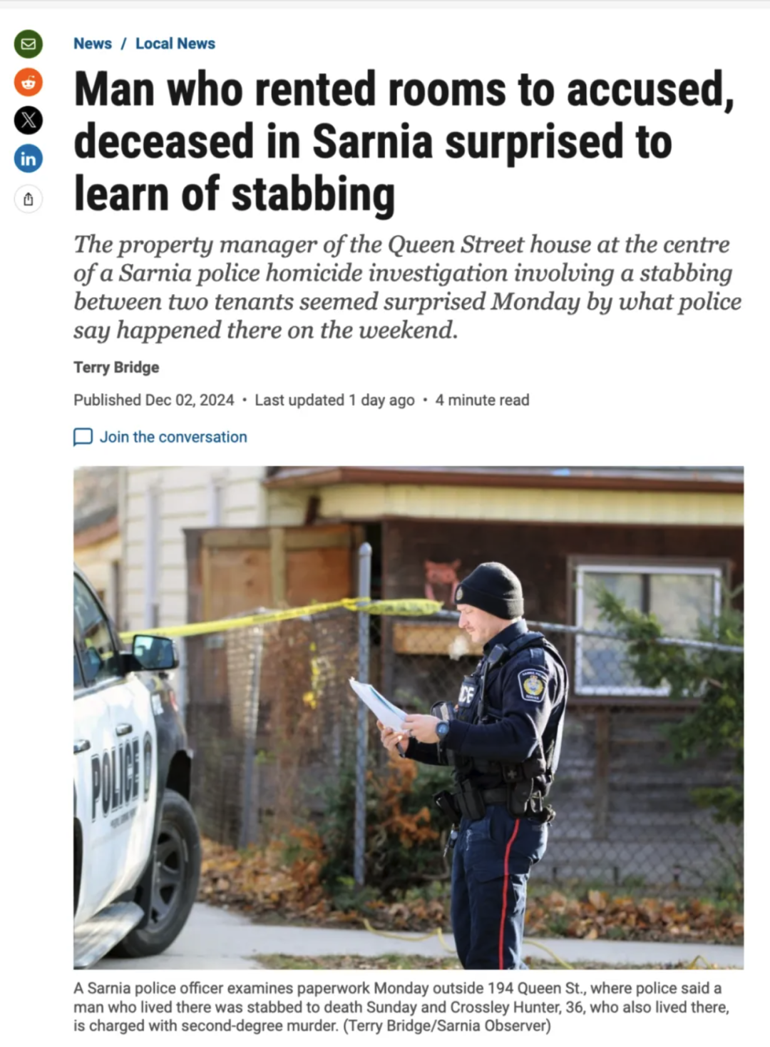 11月初,22岁的印度留学生古拉西斯·辛格(Gurasis Singh)在安省萨尼亚(Sarnia)一处出租房内遇害。