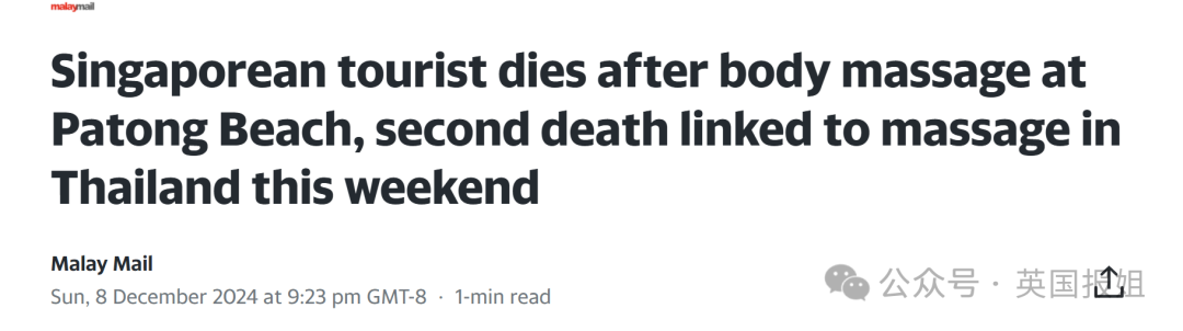 类似事件并不罕见,就在这几天泰国警方称,一名新加坡游客在泰国芭东海滩接受身体按摩不久后死亡。