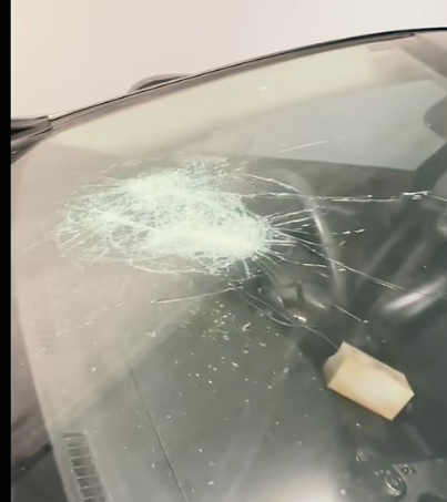 之后在夜晚,洪采薇偷着过来,砸车。