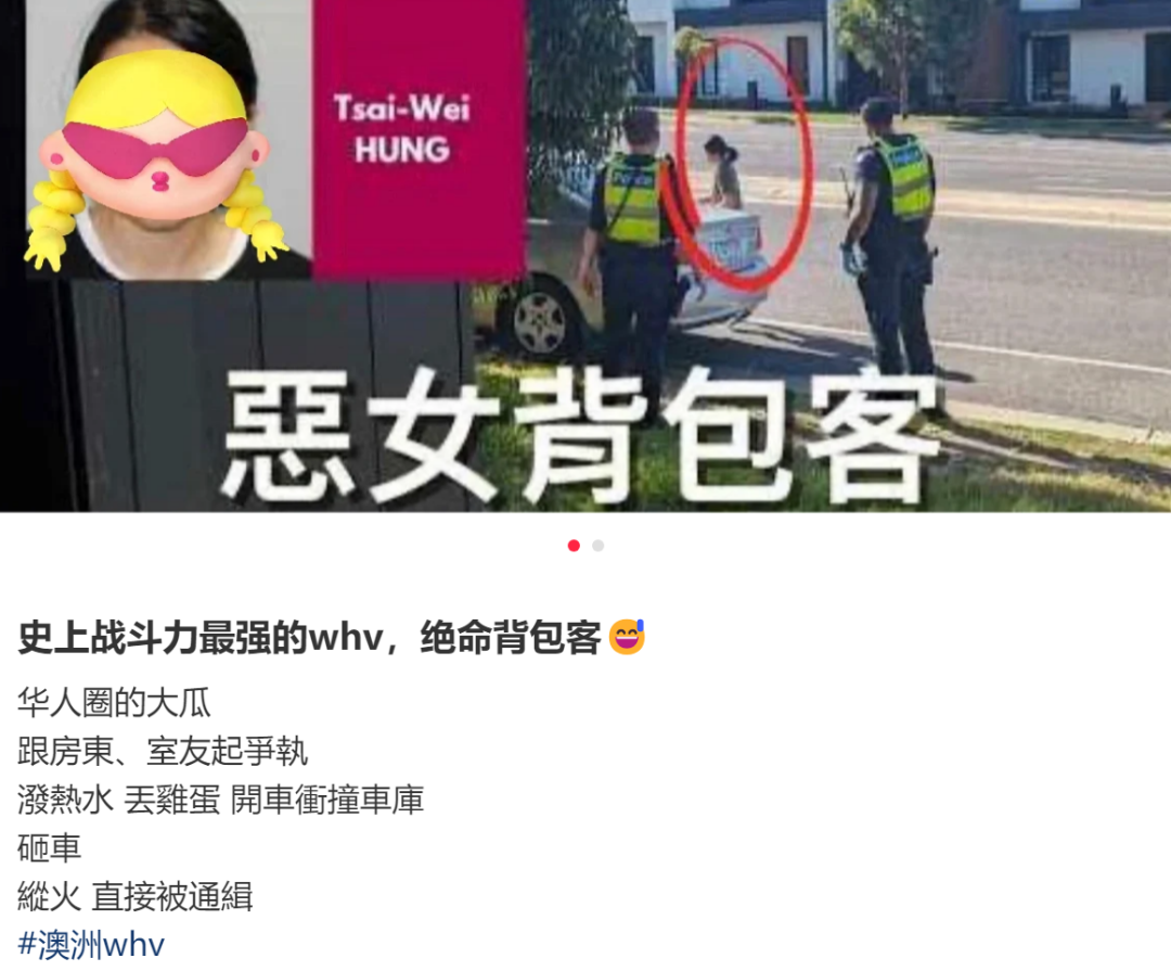 收藏澳洲最可怕whv洪采微的故事:鸡蛋开水泼人,开车撞房东,纵火烧房烧车。