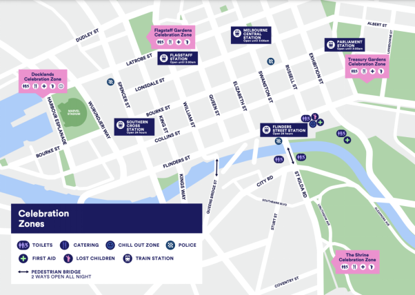 从下午7点开始,Elizabeth st的地下通道只开放给火车乘客,并且Northbank, Southbank Pedestrian Bridge和Sandridge Bridge这几个桥将关闭。