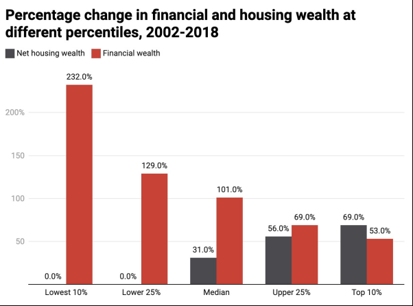 最富有的10%家庭的房产净值增长了69%,而最贫困的家庭的房产财富则依然是零。