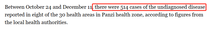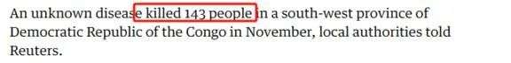 由于刚果医疗条件极差,病原体又不明,感染者得不到治疗,很多人都直接病死在家中,所以真实死亡数字很可能超过143人。