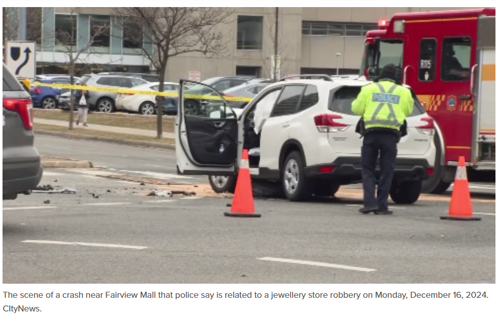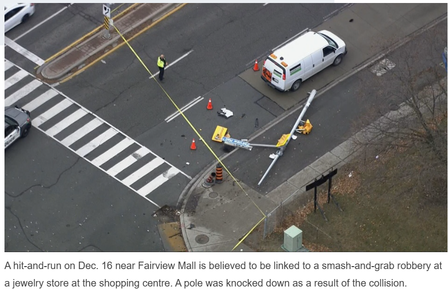多伦多警方在事发后表示,劫匪逃离时驾驶了一辆汽车,警方在随后收到的一起车祸报告中发现,车祸与这起抢劫事件存在关联。