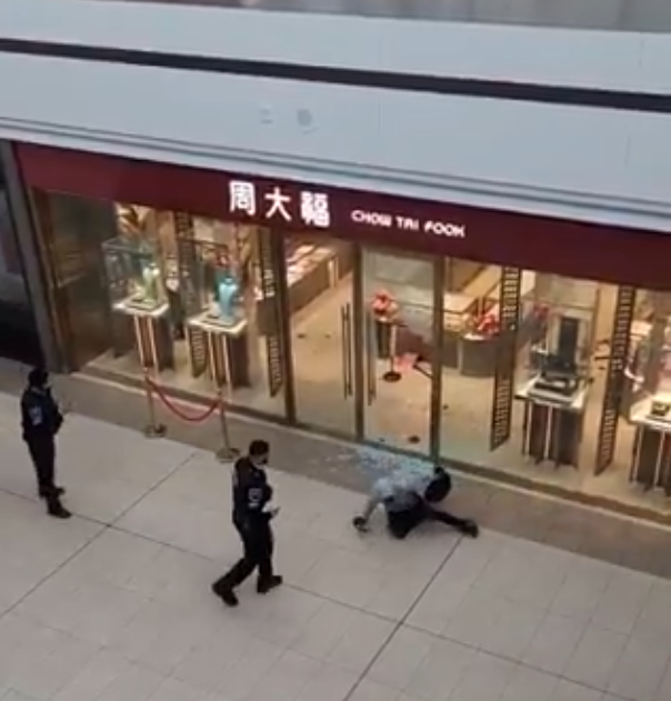 事件发生在下午1点20分左右,数名身穿黑衣、戴着面具的嫌疑人突然闯入周大福珠宝店,手持锤子将展示柜砸碎,迅速洗劫了店内的珠宝。