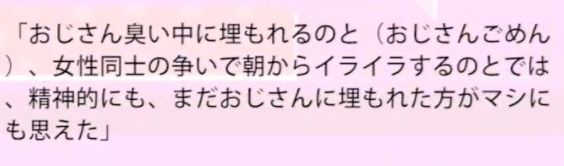 “与其一大早就和一帮女人撕逼撕到精神异常,还不如被埋在大叔堆里来的健康一些...”