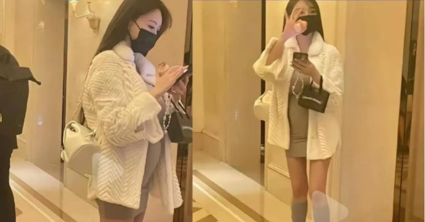 近日,有网友晒出偶遇叶珂的近照,照片中可见她穿灰色连身短裙、白色绒毛外套,下半身穿了运动鞋和灰色长袜,露出大腿,她在电梯前狂滑手机,还对旁人比出OK手势,看似正急忙连络他人。