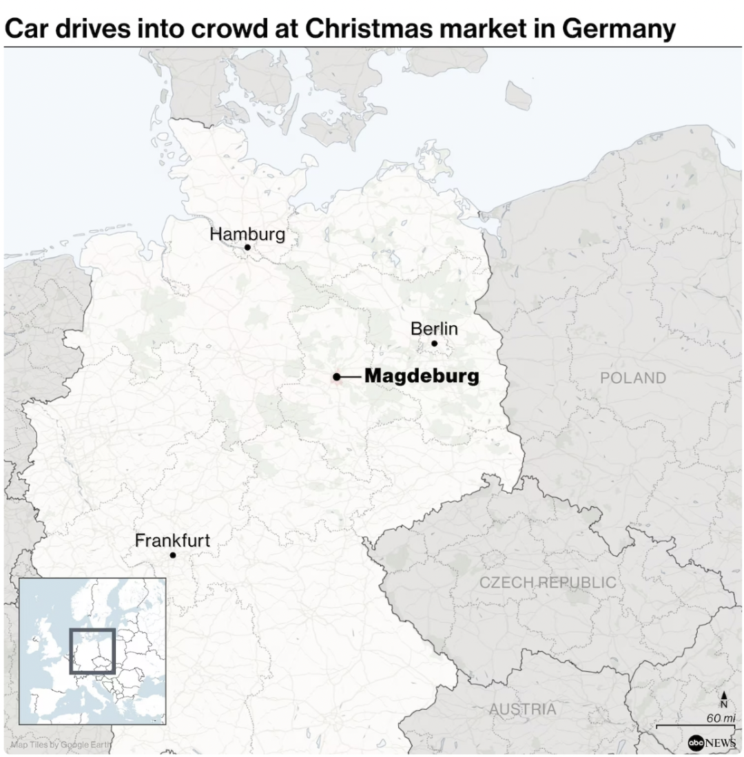 这两天一场震惊全国的悲剧发生在德国马格德堡的圣诞市场上,一名50岁的男子塔勒布·A驾驶宝马车冲进人群,造成5人死亡,205人受伤。