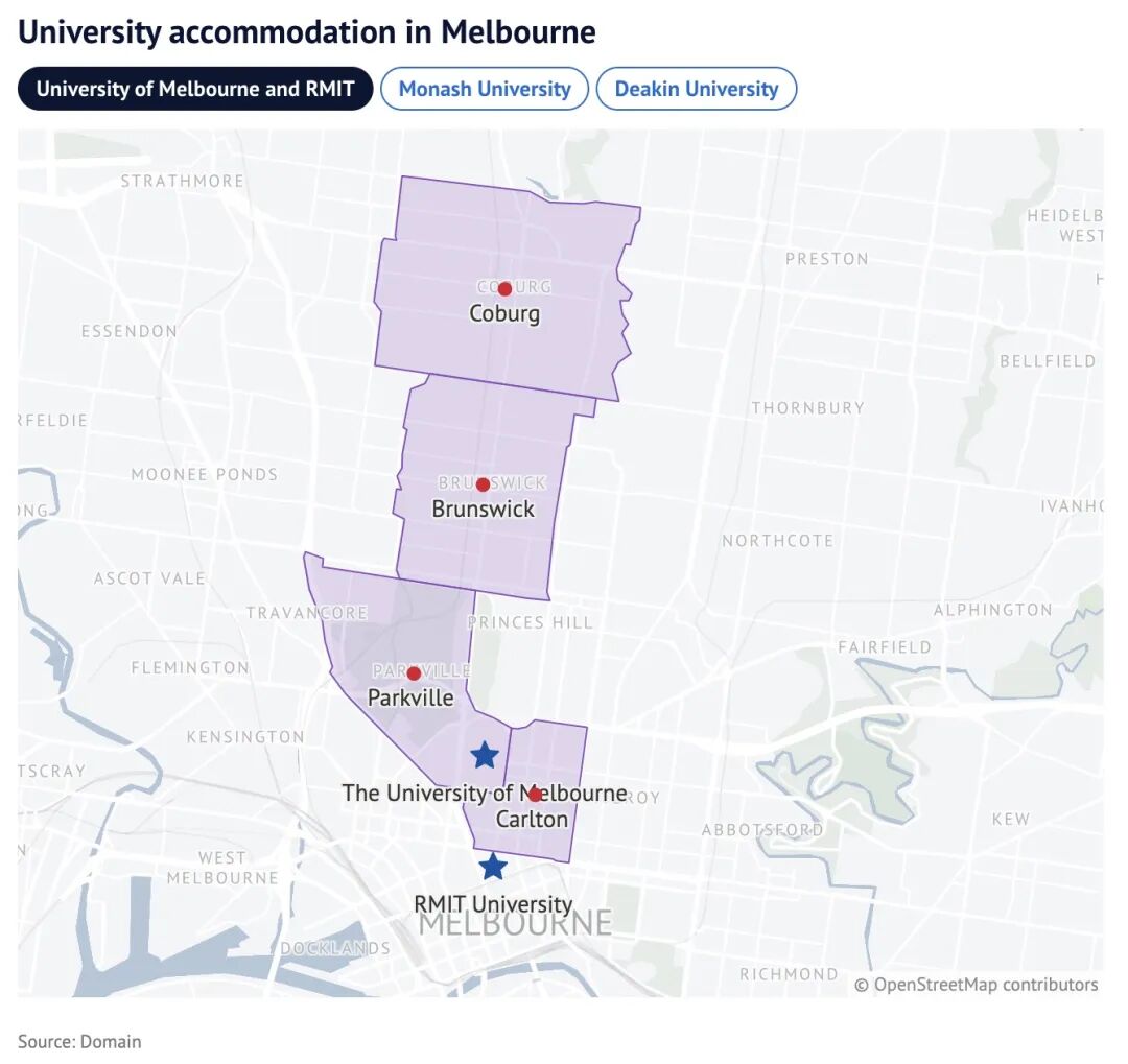 前段时间,Domain也是专门进行了整理,介绍了墨尔本几所大学的学校位置,和租房选择,下面就快来看看,哪里或许才是最适合自己的选择吧。