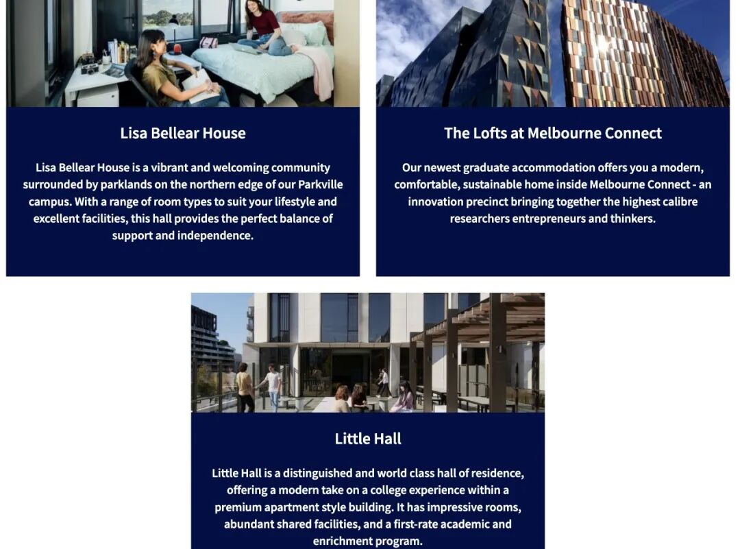 就在校区附近还有很多其它学生住宿的选项,比如Lisa Bellear House、Little Hall等,大家可以去官网上探索更多。