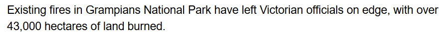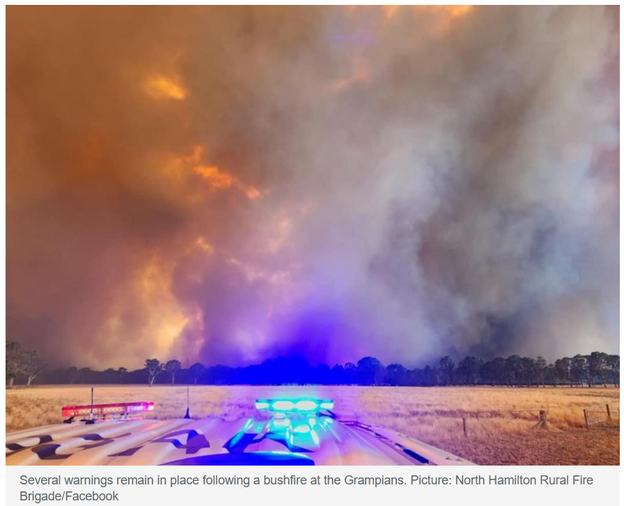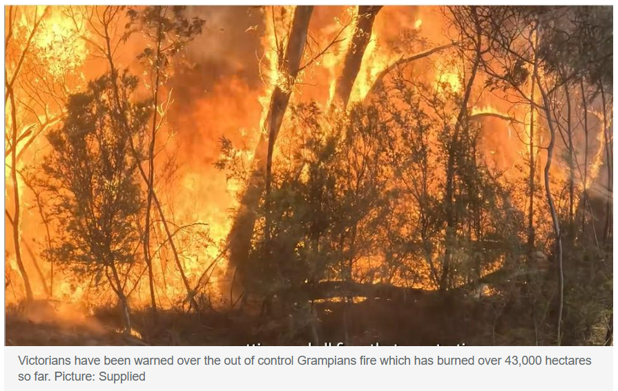 更可怕的是,从上周三开始,位于墨尔本西北Mirranatwa的著名景点Grampians国家公园附近山火已经失控。