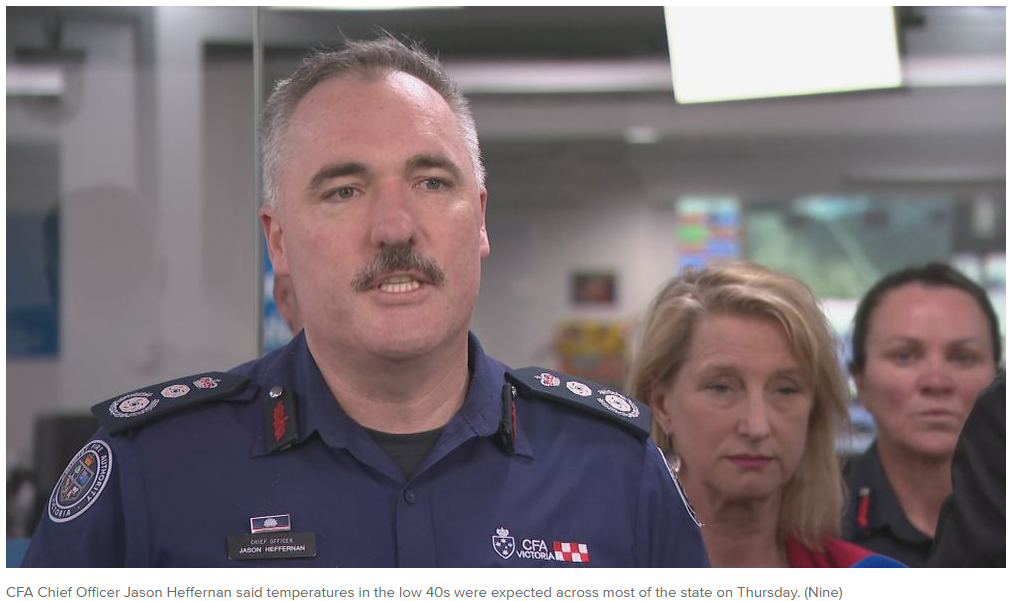乡村消防局(CFA)负责人Jason Heffernan表示,由于气温飙升至40多度,结合风速达到了100公里/小时——