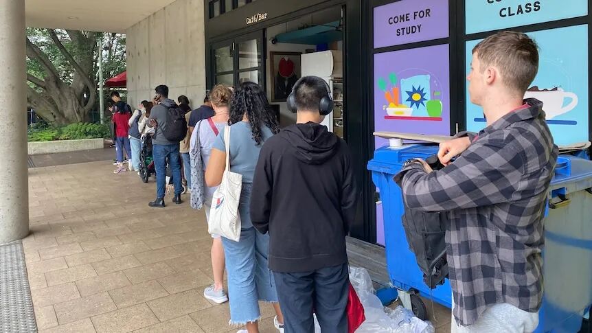 疫情期间,他和妻子因工作不稳定而不得不依靠新南威尔士大学的食品福利服务。“刚开始服务很快,10分钟就能拿到食物,但现在需要排队一个小时以上。”