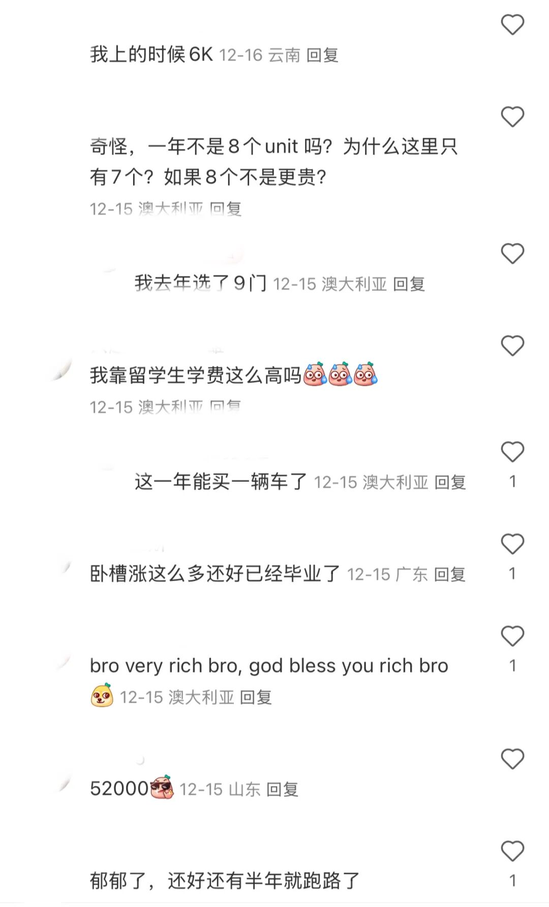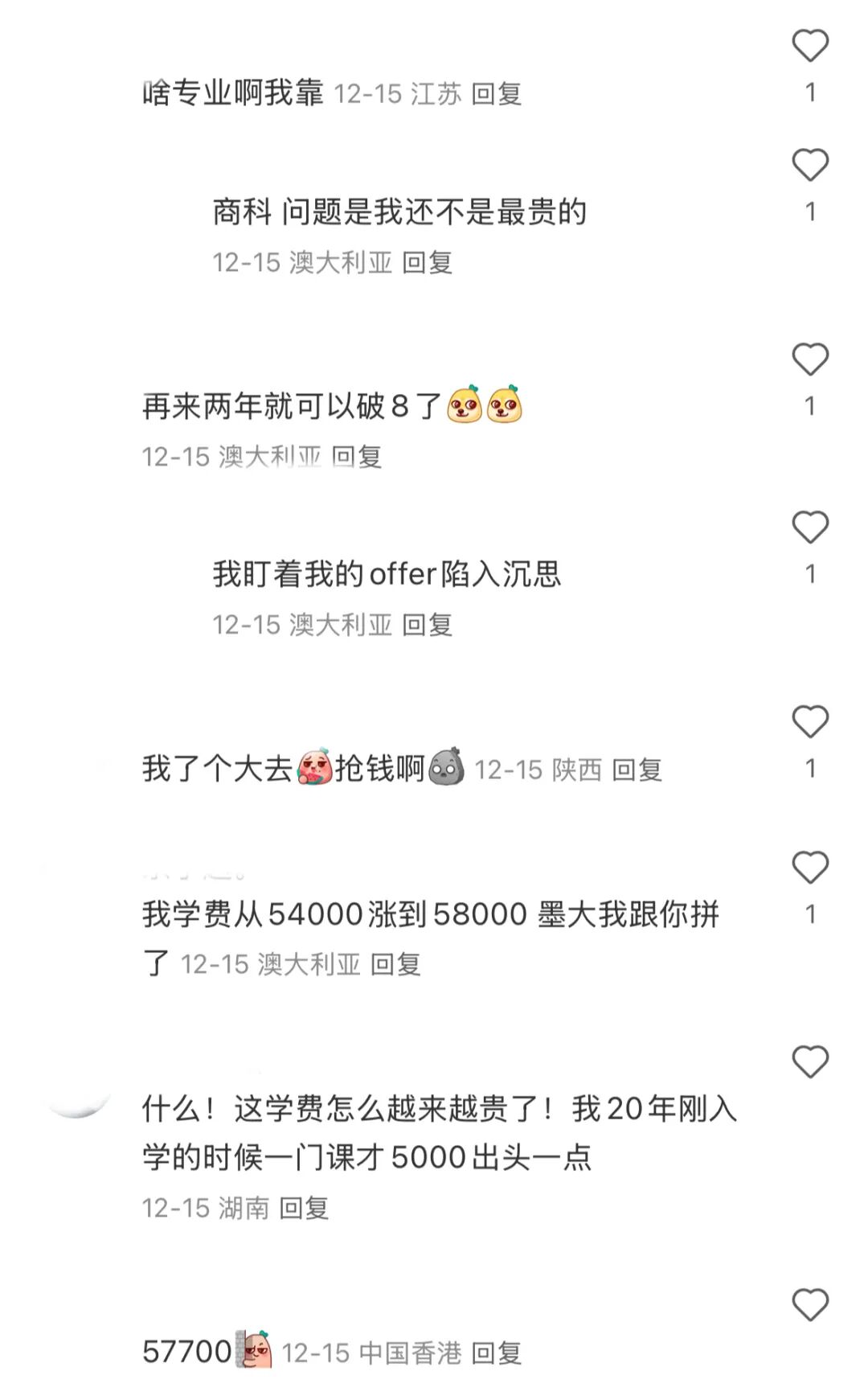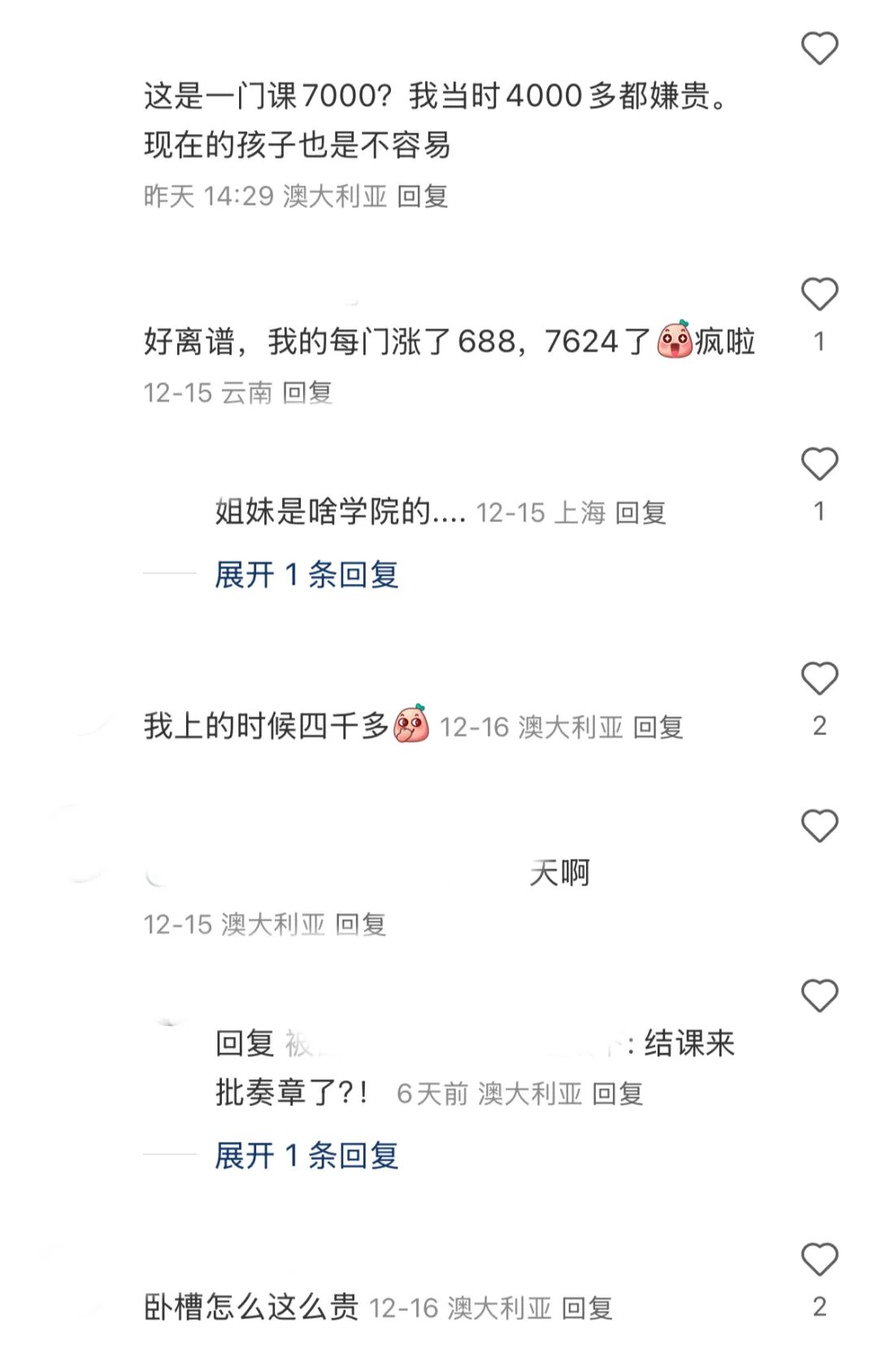有学生直言:“本来学费已经很贵了,现在更是雪上加霜。” 对于依靠家庭支持或需要兼职打工来支付学费和生活费用的学生来说,这次涨价无疑是沉重的打击。不少学生表示,涨幅过高,甚至超过了他们的心理预期。