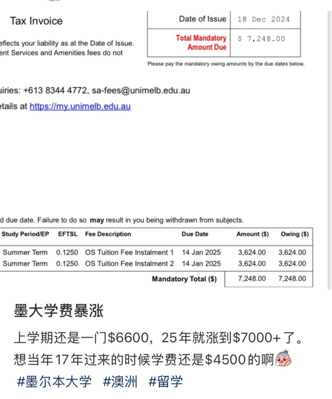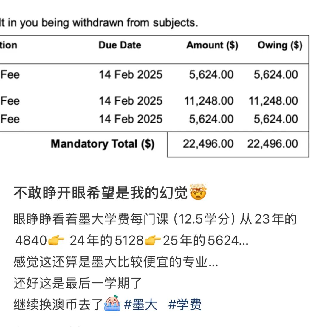 收藏重磅炸弹:澳大学学费飙涨!2025年增幅吓人!“离谱,快翻倍了”!一张照片,揭示留学生当下多苦逼