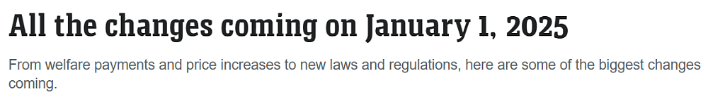 以下是即将从2025年1月1日起实施的几项重大变化。