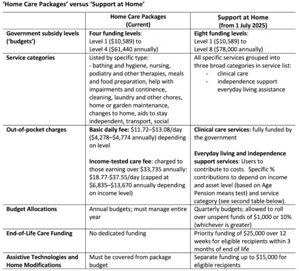 从2025年7月1日起,“家庭支持”(Support at Home)将全面取代现有的“家庭护理套餐”计划。两者在补贴等级、服务类别及资助模式上存在显著差异。以下是主要变化点: