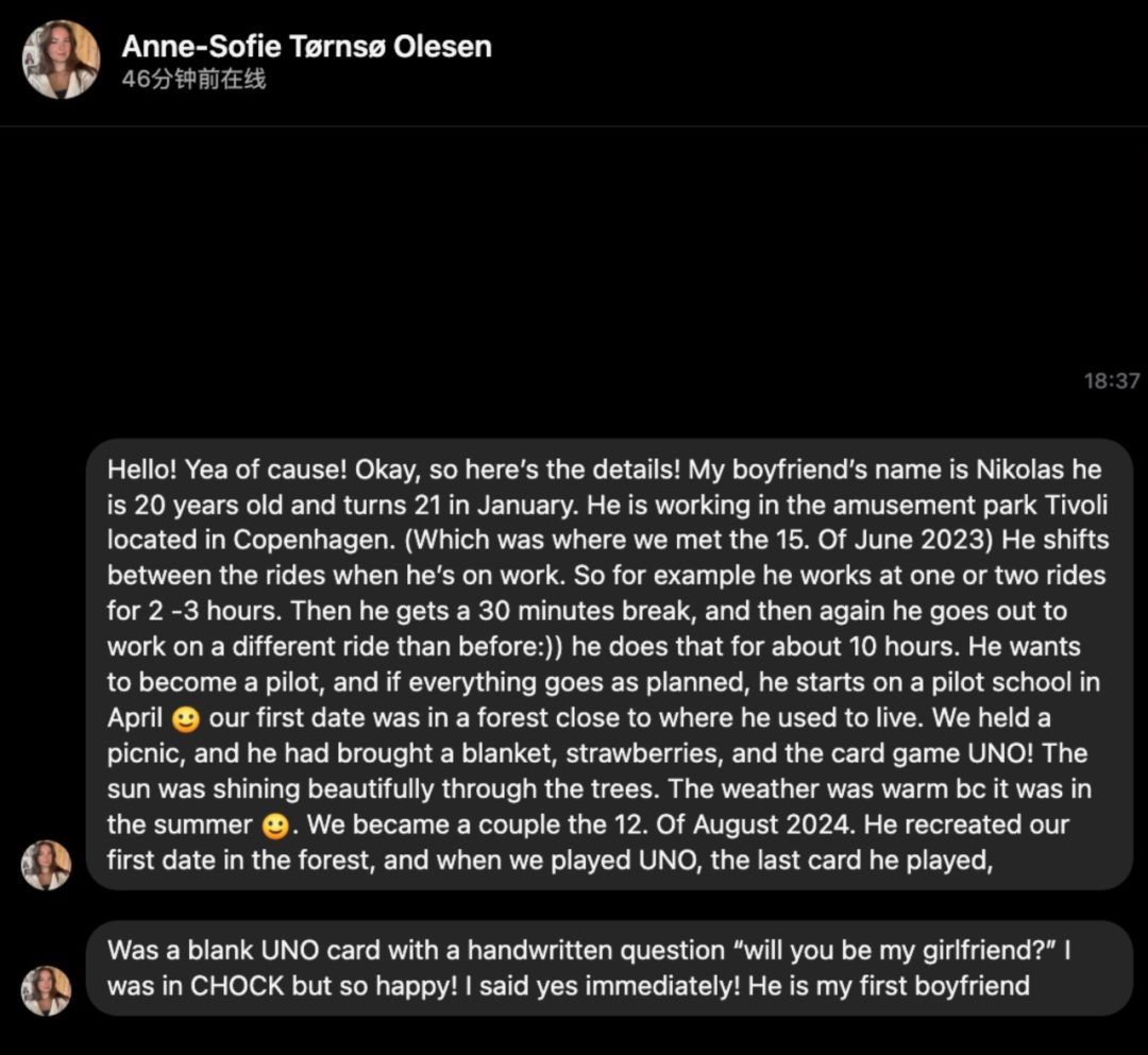 库尔丁在社媒上再次联系上了奥尔森,两人也因为“灰姑娘”这个话题越聊越起劲,联系越来越频繁。