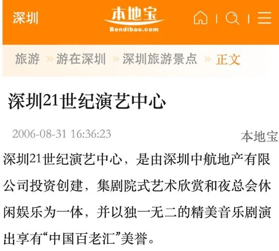 深圳市中航康艺娱乐公司旗下的21世纪演艺中心,