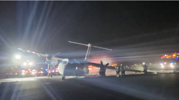 降落时一个起落架未能正确展开,飞机在跑道上滑行时左侧起火。机组人员和73名乘客无大碍。