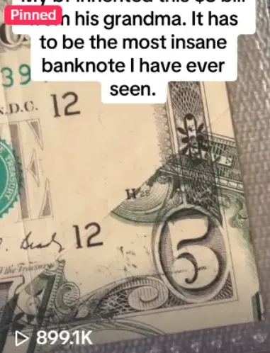 “我男朋友从他奶奶那里继承了这张 5 美元现金。这肯定是我见过的最疯狂的钞票。”