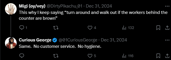 “这就是为什么我一直说“如果柜台后面的工作人员是棕色皮肤,就转身走出去””
