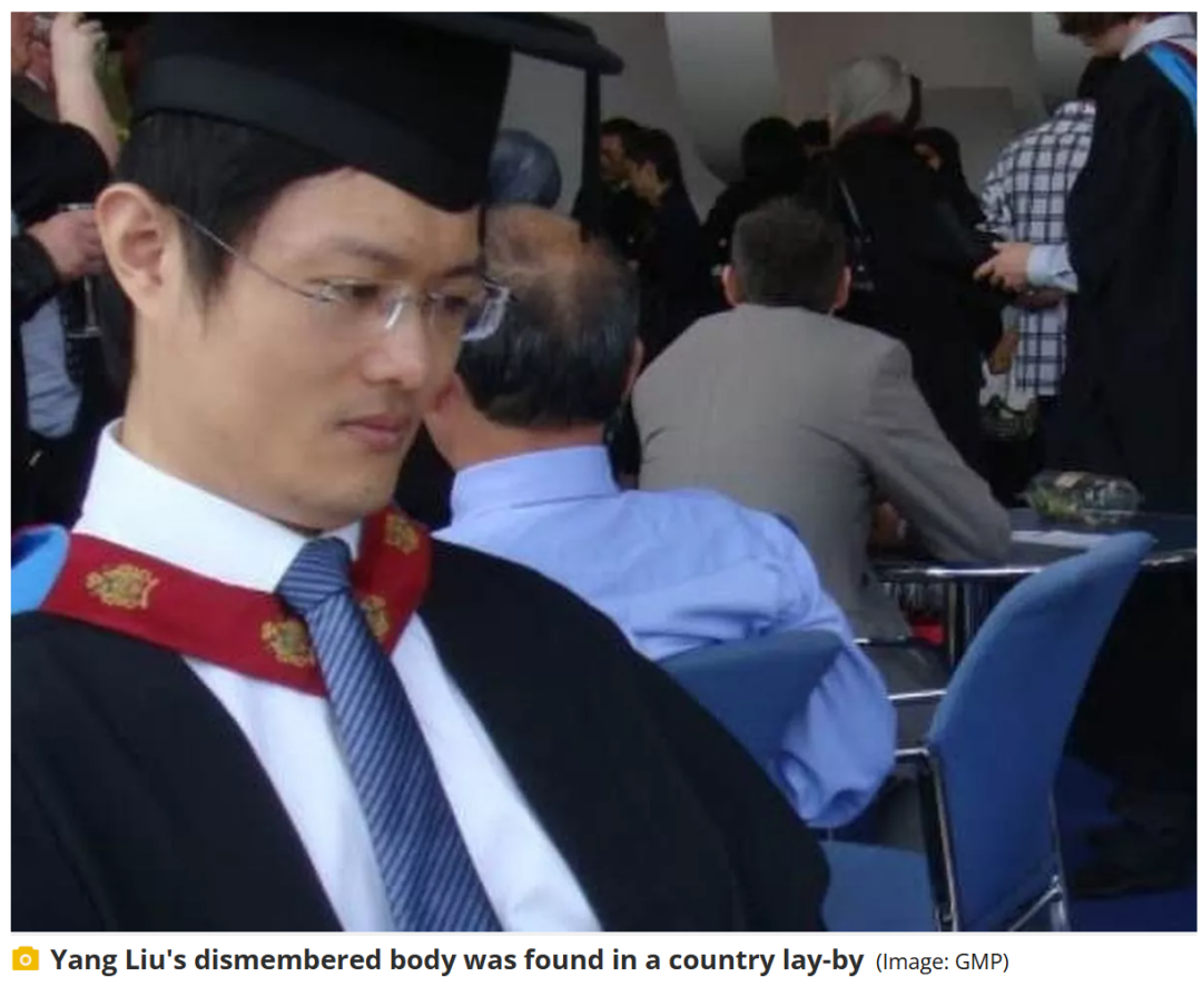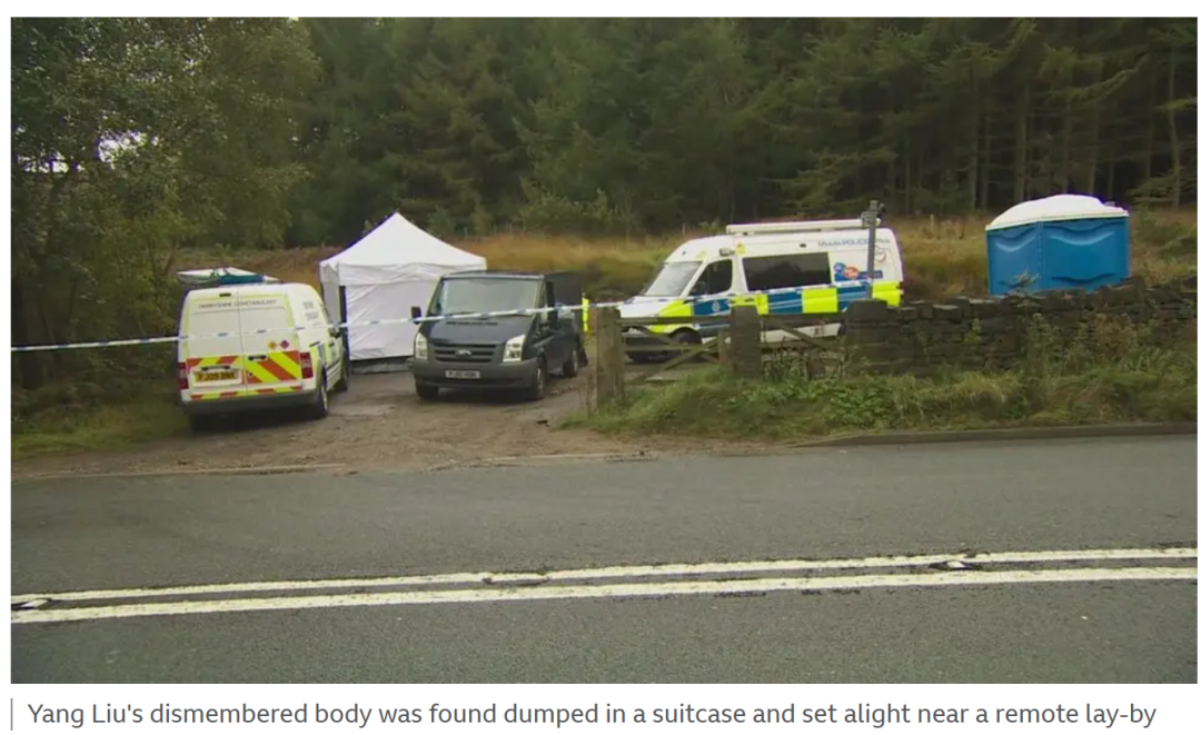 2016年10月,英格兰德比郡的一名路过的英国司机,意外发现了一个可疑的行李箱,箱子里竟然藏着一具被焚烧过的尸体。这个尸体的主人,是来自中国的36岁男子刘洋(Yang Liu)。