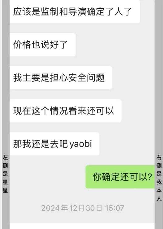 这个所谓的副导演在没有谈片酬、未签合同、不曾给定金的情况下便要求她来剧组。不仅如此,这个所谓副导演发给桃囍的试戏片段并无人物小传、场次信息及水印,非常不正规。思虑后,桃囍断定,此乃假剧组。现在,桃囍呼吁,演员朋友们遇到境外拍摄一定要多加防范,尽量找熟悉的、合作过的团队。