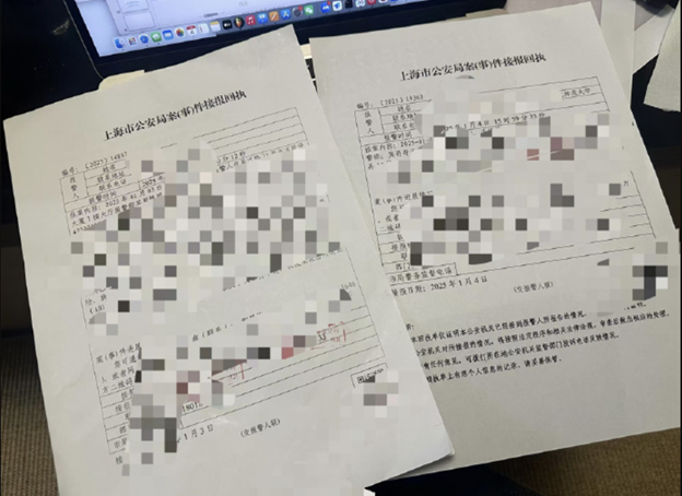 事发后至1月5日,星星女友立即联络上海市公安局和中国驻泰国大使馆、驻清迈使领馆寻求帮助,并获得两份回执单。