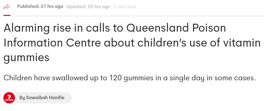 除了维生素B6,就在最近,澳洲当局向所有家长发出提醒: