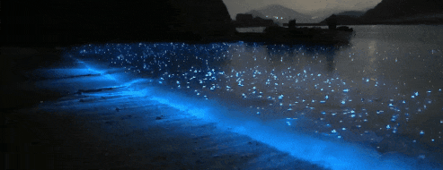 其原理类似于萤火虫发光,但色彩是更冷艳的蓝绿色,映衬着夜空,仿佛仙境。