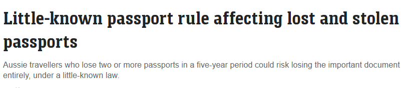 新年的第一天,澳洲媒体就披露了一则重磅消息:护照丢失可不是小事,尤其是5 年内若丢失 2 本以上护照,后果很严重!