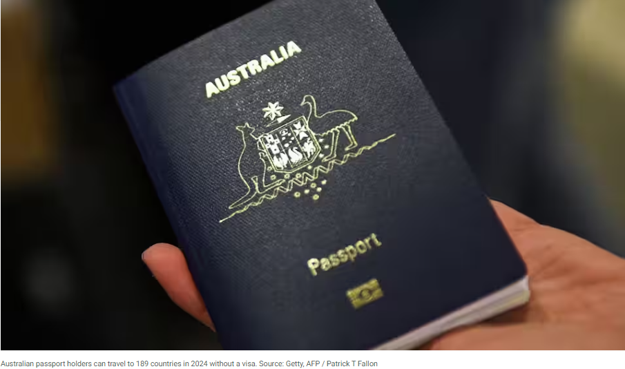 根据 2024 年亨利护照指数,澳洲护照排名全球第 5,可免签 189 个国家和地区,甚至超过了美国护照。