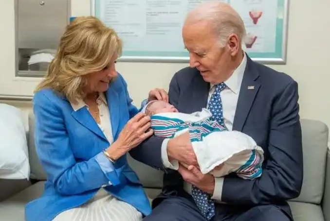 拜登当地时间1月8日在社交媒体上发布了她与拜登抱着曾孙的照片